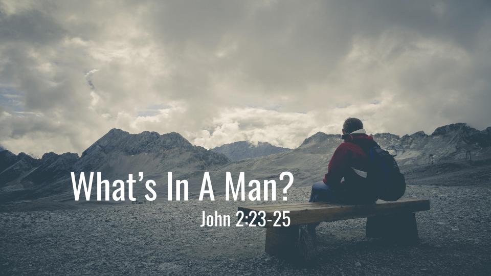 The title for this sermon is “What’s In A Man?” If you have your Bibles with you, our scripture (which was just read to us a while ago) is from the gospel of John, chapter 2 beginning in verse 23. Before we jump into our study, I would like for us to reread this scripture.